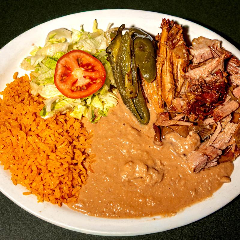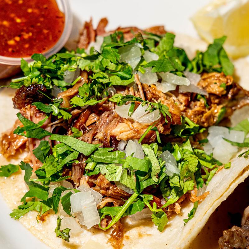 Tacos with choice of chicken, mixed carnitas, carnitas meat only, al pastor, or asada. Served in soft tortillas.