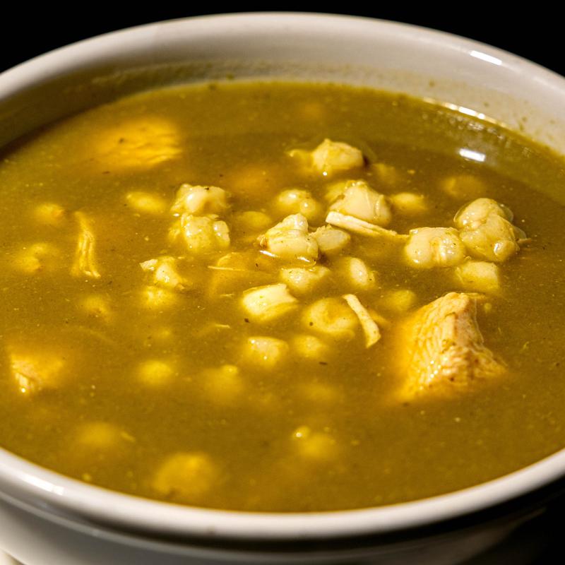 Pork simmered in a green tomatillo sauce, typically served with rice and beans.
